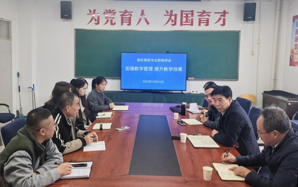 2025年10月22日下午,农林科技学院组织召开畜牧兽医专业群教研室会议,围绕贯彻落实学校“十月教学工作会议”精神,聚焦当前教学管理中的突出问题,就如何提升教学质量、增强育人实效开展深入研讨。学校党委副书记王录军、教务处处长魏恒到会指导。会议由畜牧兽医教研室主任杨永倩主持。会议直面当前畜牧兽医专业群教学中存在的多发问题,进行了深度研讨。与会教师积极交流经验,分享了运用平时成绩激励约束、引入生产实践与临...